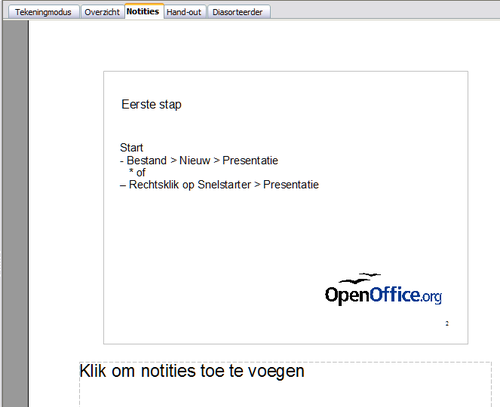 Gebruik de weergave Notities om notities toe te voegen aan een dia.